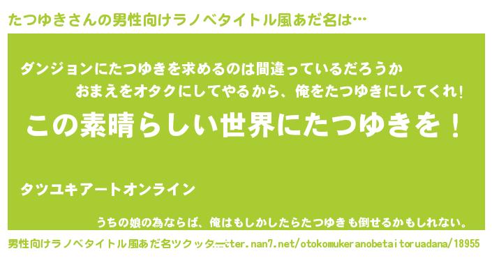 | 女子向けラノベタイトル風あだ名 | 『乙女ゲームの破滅フラグしかない悪役たつゆきに転生してしまった…』 |