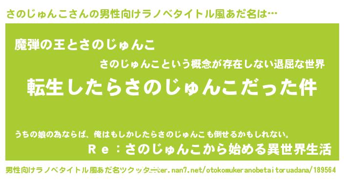 さのじゅんこさんの男性向けラノベタイトル風あだ名をツクッター!