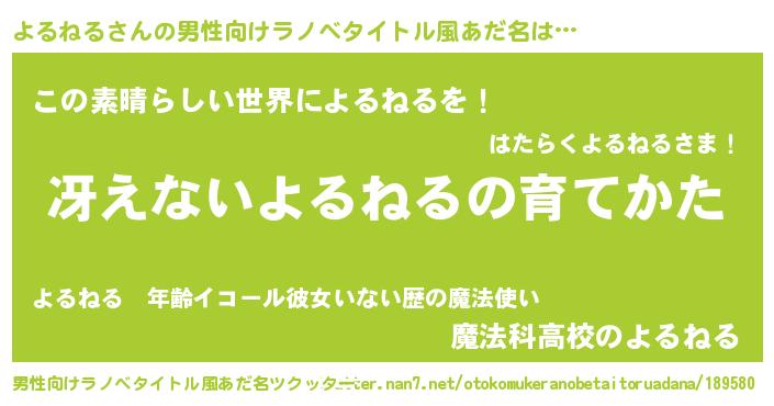 | 意味不明あだ名 | 『住所不定無職よるねる(89歳)』 |