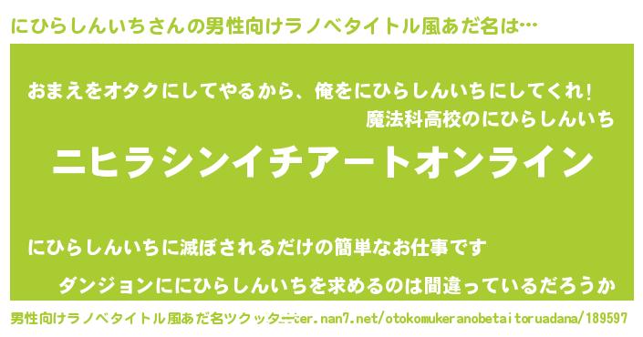 | 胡散臭い通販商品みたいなあだ名 | 『億万長者になれる水晶球…その名も「にひらしんいち」』 |