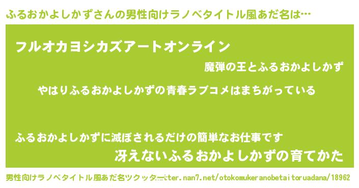 | 女子向けラノベタイトル風あだ名 | 『ふるおかよしかずの雑貨屋さん』 |