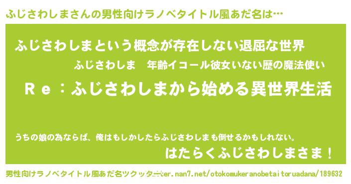 | 女子向けラノベタイトル風あだ名 | 『闇のふじさわしま』 |