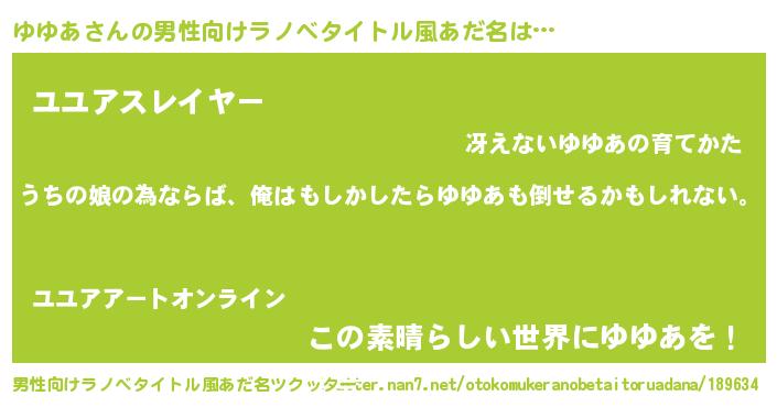 | ファンタジー風あだ名 | 『エターナルユユアー』『ヴァルユユーナ』 |