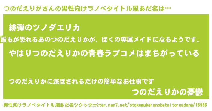 | 女子向けラノベタイトル風あだ名 | 『つのだえりかの雑貨屋さん』 |