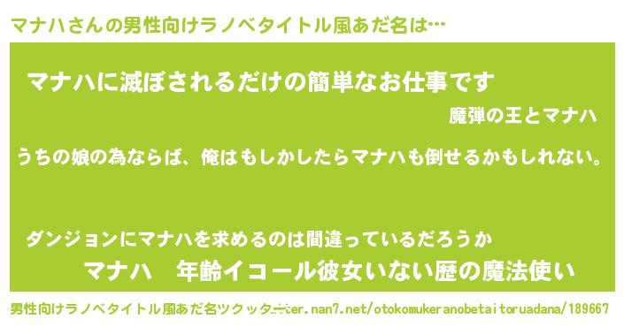 | 女子向けラノベタイトル風あだ名 | 『マナハの婚約者』 |