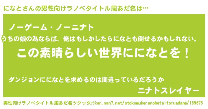 | ヒーロー風カッコイイあだ名 | 『仮面ニナダー』『慈愛の使者になと』 |