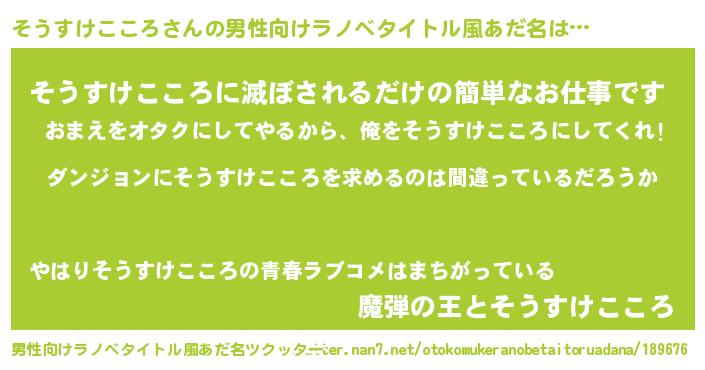 | 女子向けラノベタイトル風あだ名 | 『そうすけこころは平凡を望む』 |