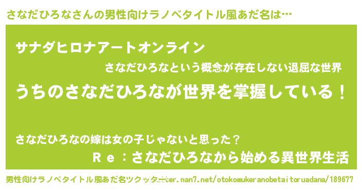 | ヘコむあだ名 | 『さなにゅー』『さなだひろな(小並感)』 |