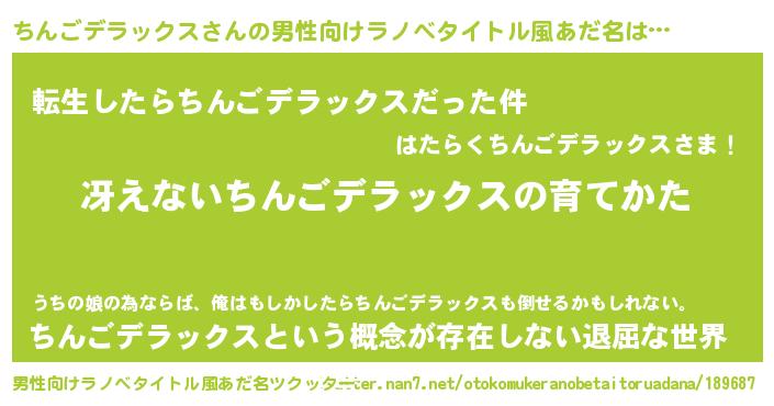 | 胡散臭い通販商品みたいなあだ名 | 『来世でも幸せになれる健康食品…その名も「ちんごデラックス」』 |