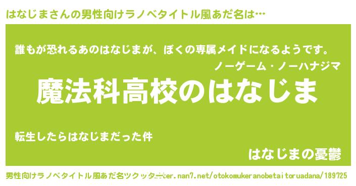 | 女子向けラノベタイトル風あだ名 | 『はなじまなんてお断りですっ。』 |