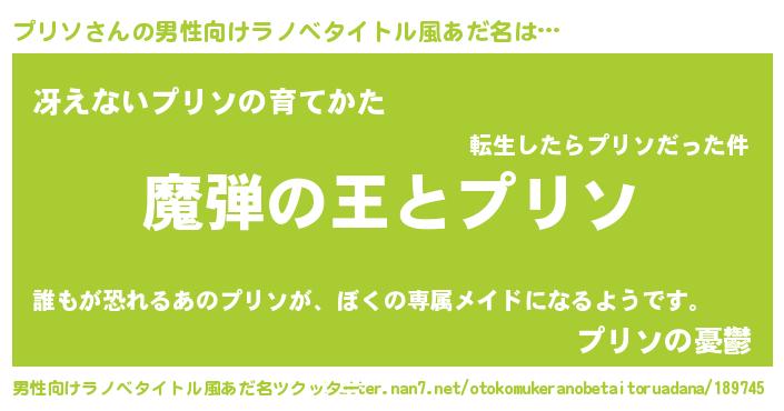 | 意味不明あだ名 | 『住所不定無職プリソ(2歳)』 |
