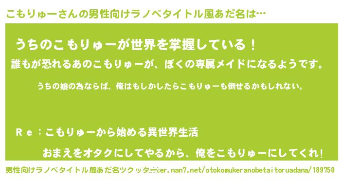 | 胡散臭い通販商品みたいなあだ名 | 『世界が平和になる高級そうな壺…その名も「こもりゅー」』 |