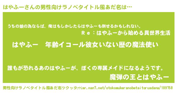 | 意味不明あだ名 | 『ヨモギ科はやふー属』『自称はやふー』 |