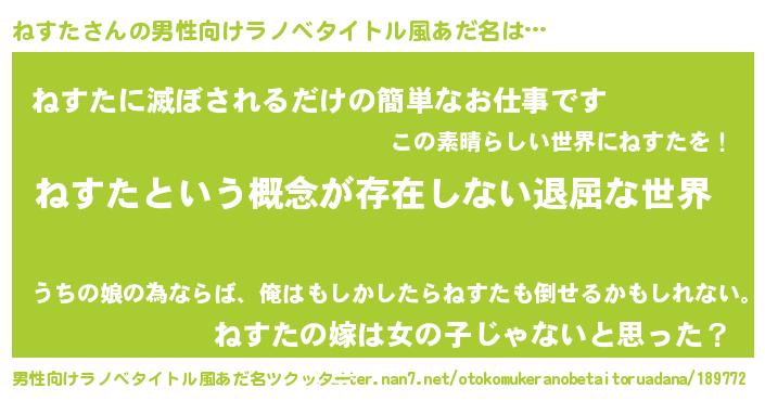 | 伝説のあだ名 | 『古より伝わる吟遊詩人ねすた』 |