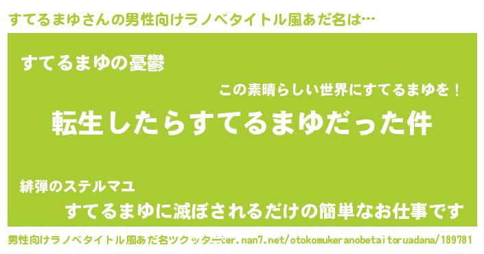 | 女子向けラノベタイトル風あだ名 | 『すてるまゆの玉の輿計画!』 |