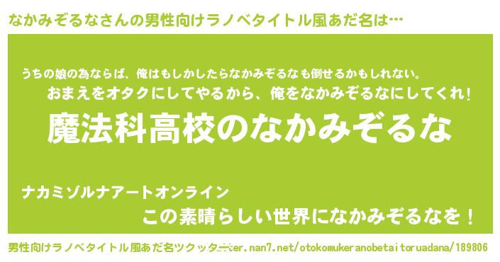 | 女子向けラノベタイトル風あだ名 | 『なかみぞるななんてお断りですっ。』 |