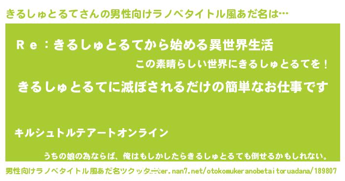 | 胡散臭い通販商品みたいなあだ名 | 『芸能人もオススメする高麗人参…その名も「きるしゅとるて」』 |