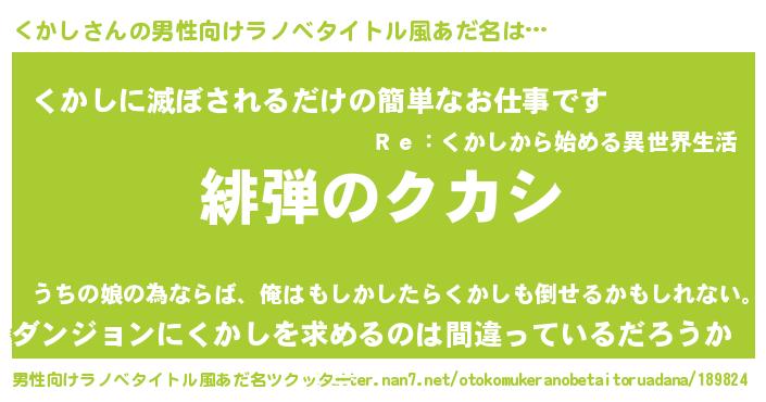| 胡散臭い通販商品みたいなあだ名 | 『信頼と実績のサプリメント…その名も「くかし」』 |