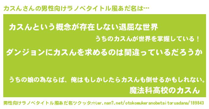 | ヒーロー風カッコイイあだ名 | 『魔戒騎士カス』『ネオカスン』 |