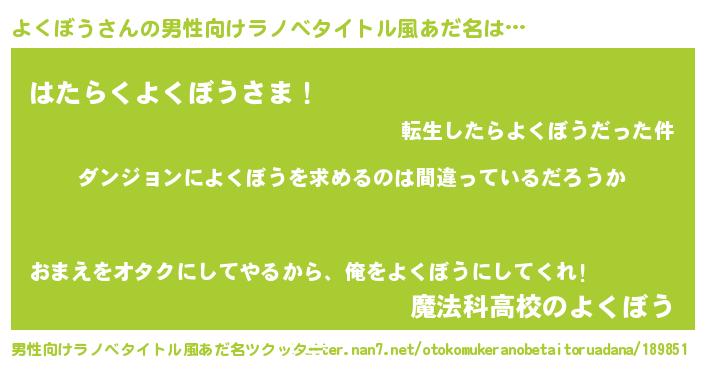 | 女子向けラノベタイトル風あだ名 | 『よくぼうは平凡を望む』 |