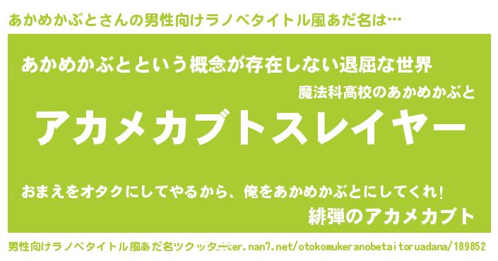 | 胡散臭い通販商品みたいなあだ名 | 『絶対に幸福をもたらす水素水…その名も「あかめかぶと」』 |