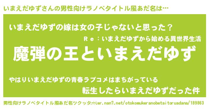 | 女子向けラノベタイトル風あだ名 | 『いまえだゆずが死なない童話 林檎のいまえだゆずの診療簿』 |