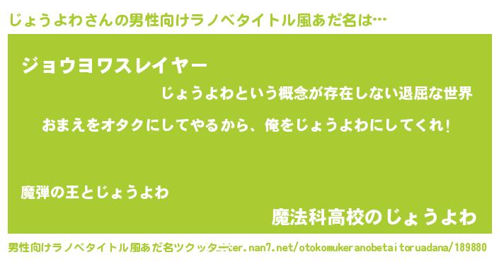 | 胡散臭い通販商品みたいなあだ名 | 『100人中100人が認めたマグネット磁石…その名も「じょうよわ」』 |