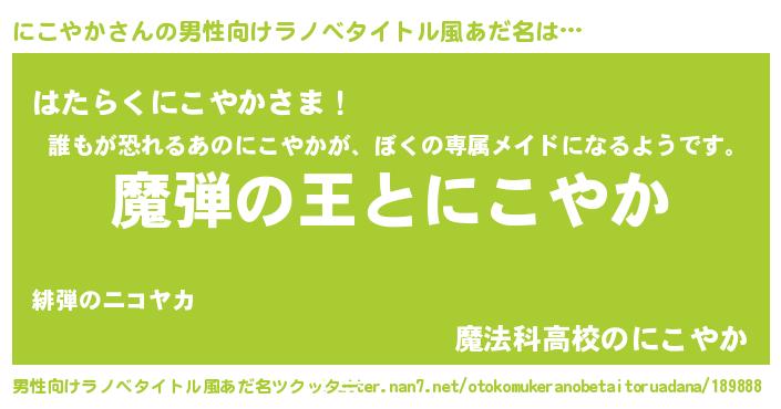 | ヒーロー風カッコイイあだ名 | 『仮面ニコダー』『超時空戦士ニコヤカ』 |