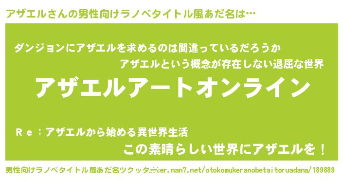 | 女子向けラノベタイトル風あだ名 | 『誰かこのアザエルを説明してください! ~契約から始まるウェディング~』 |