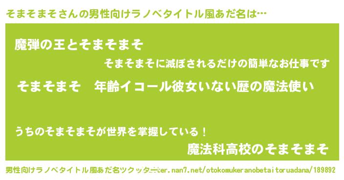 | 胡散臭い通販商品みたいなあだ名 | 『あなたにだけ特別に提供する100年もののヴィンテージワイン…その名も「そまそまそ」』 |