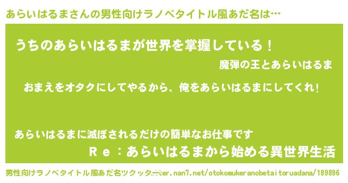 | 女子向けラノベタイトル風あだ名 | 『あらいはるま恋絵巻』 |