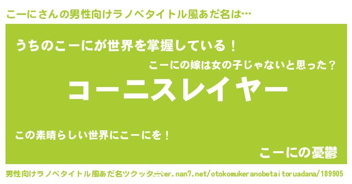| 胡散臭い通販商品みたいなあだ名 | 『必ず成功する水晶球…その名も「こーに」』 |