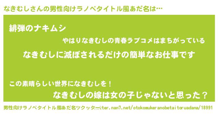 | ヒーロー風カッコイイあだ名 | 『天弓騎士ナキ』『ウルトラなきむしマン』 |