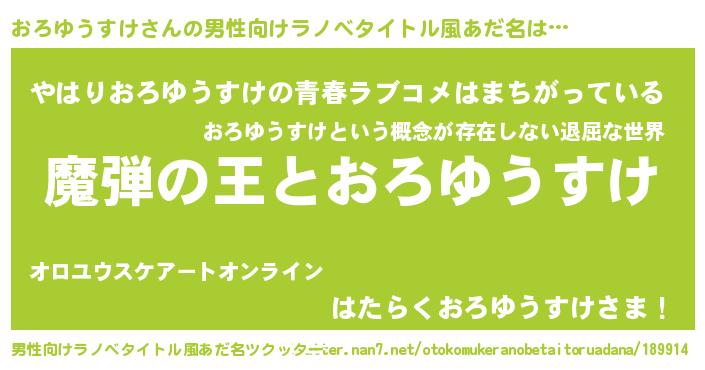 | 女子向けラノベタイトル風あだ名 | 『おろゆうすけが死なない童話 林檎のおろゆうすけの診療簿』 |