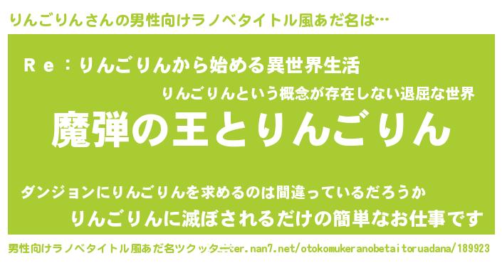 | 意味不明あだ名 | 『住所不定無職りんごりん(56歳)』 |