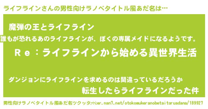 | 意味不明あだ名 | 『自称ライフライン』 |