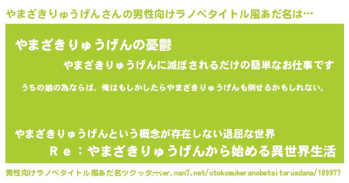 | ファンタジー風あだ名 | 『エターナルヤマザキリュウゲンー』 |