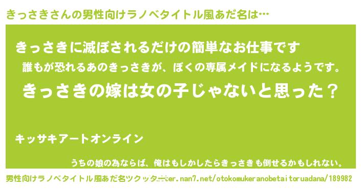| 女子向けラノベタイトル風あだ名 | 『きっさき様がみてる』 |