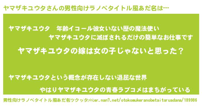ヤマザキユウタさんの男性向けラノベタイトル風あだ名をツクッター!