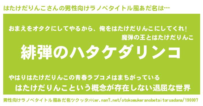 | 胡散臭い通販商品みたいなあだ名 | 『100人中100人が認めた隕石のかけら…その名も「はたけだりんこ」』 |