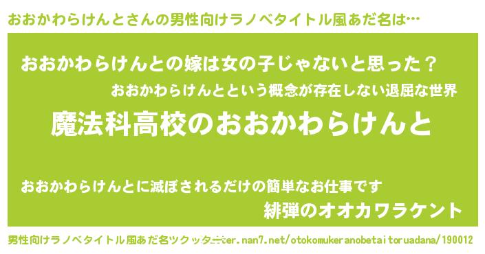 | 女子向けラノベタイトル風あだ名 | 『おおかわらけんとアンティーク』 |