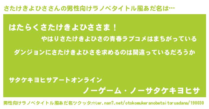 | 胡散臭い通販商品みたいなあだ名 | 『伝統あるサプリメント…その名も「さたけきよひさ」』 |