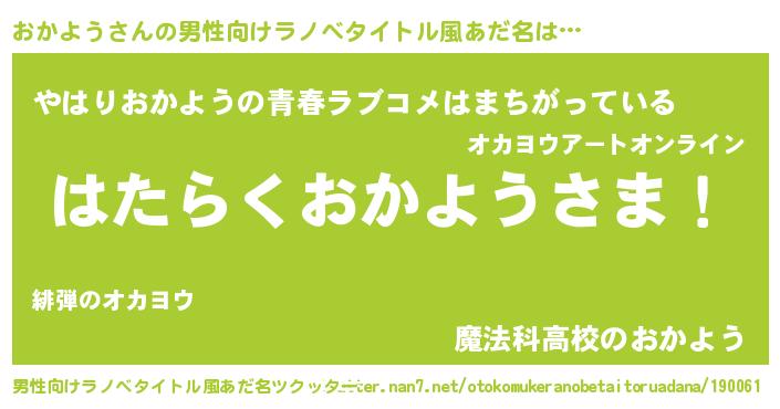 | 意味不明あだ名 | 『おかようフォーエバー』『自称おかよう』 |
