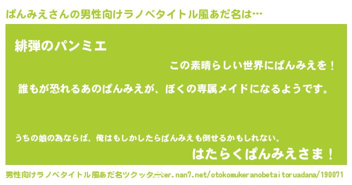 | 意味不明あだ名 | 『永久保存ぱんみえ』『自称ぱんみえ』 |