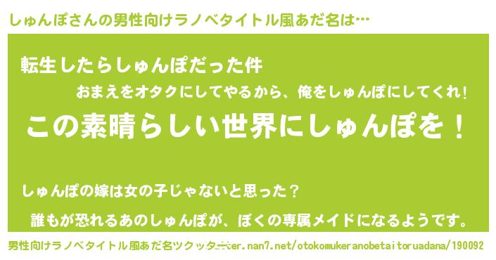 | 意味不明あだ名 | 『住所不定無職しゅんぽ(39歳)』 |