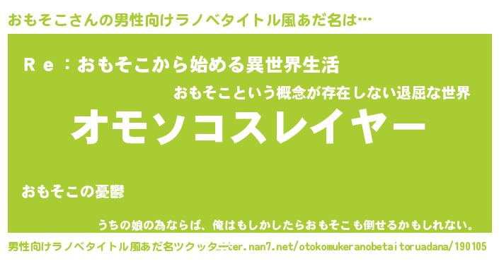 | 胡散臭い通販商品みたいなあだ名 | 『ガンによく効く高麗人参…その名も「おもそこ」』 |