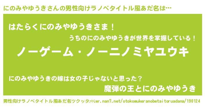 | 女子向けラノベタイトル風あだ名 | 『にのみやゆうき恋絵巻』 |