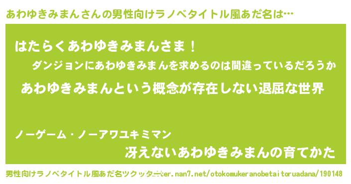 | 胡散臭い通販商品みたいなあだ名 | 『絶対に幸福をもたらす水素水…その名も「あわゆきみまん」』 |