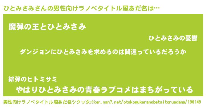 | 女子向けラノベタイトル風あだ名 | 『ひとみさみは平凡を望む』 |