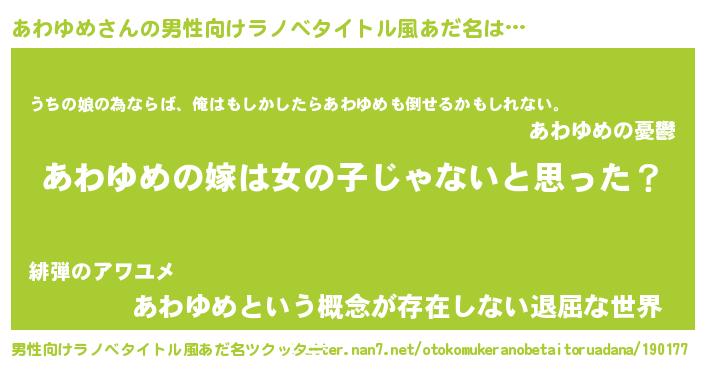 | 意味不明あだ名 | 『とにかく怪しいあわゆめ』 |